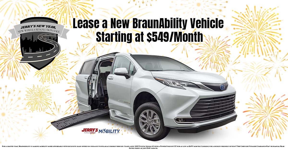 Disclaimer: For a limited time, BraunAbility is making mobility more affordable with exclusive lease offers on our most popular accessible vehicles. Lease a new 2025 Toyota Sienna LE with a Power Foldout XT for as low as $699/month.1 Looking for a budget-friendly option? The Chrysler Voyager CompanionVan® or Manual Rear Entry starts at just $549/month.