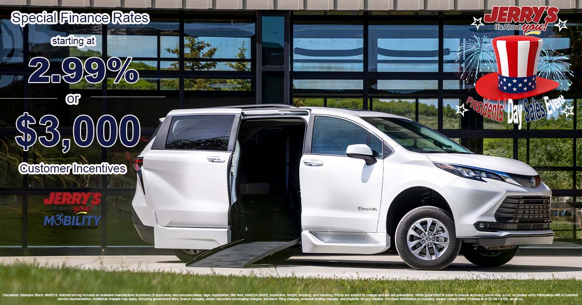 Disclaimer: Your Vehicle, Your Way! Choose special financing available with APR starting at 2.99% for up to 72 months, or take advantage of a $3,000 customer incentive on new Chrysler wheelchair vans with new BraunAbility conversions. The monthly payment for every $1,000 borrowed at a 2.99% finance charge for 72 months is $15.19.